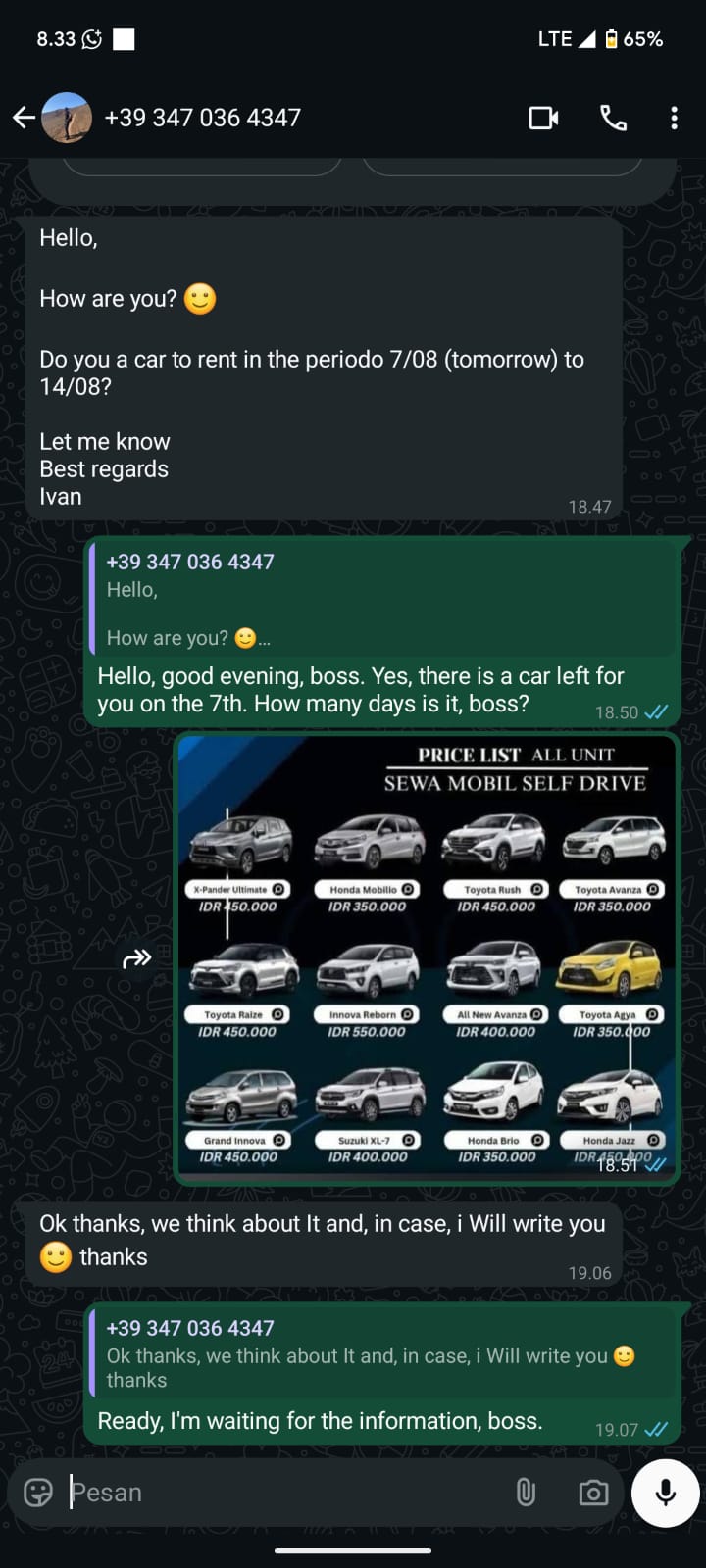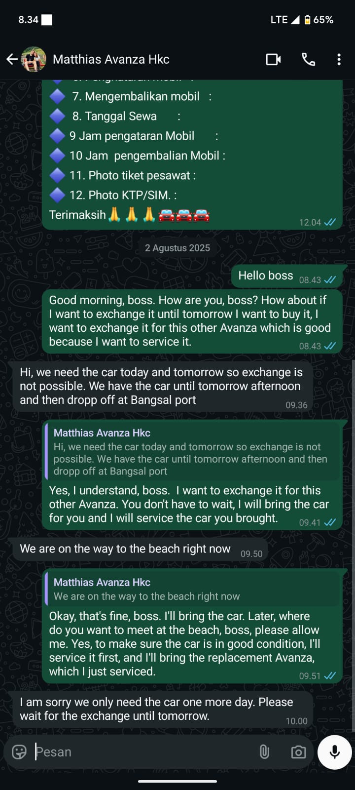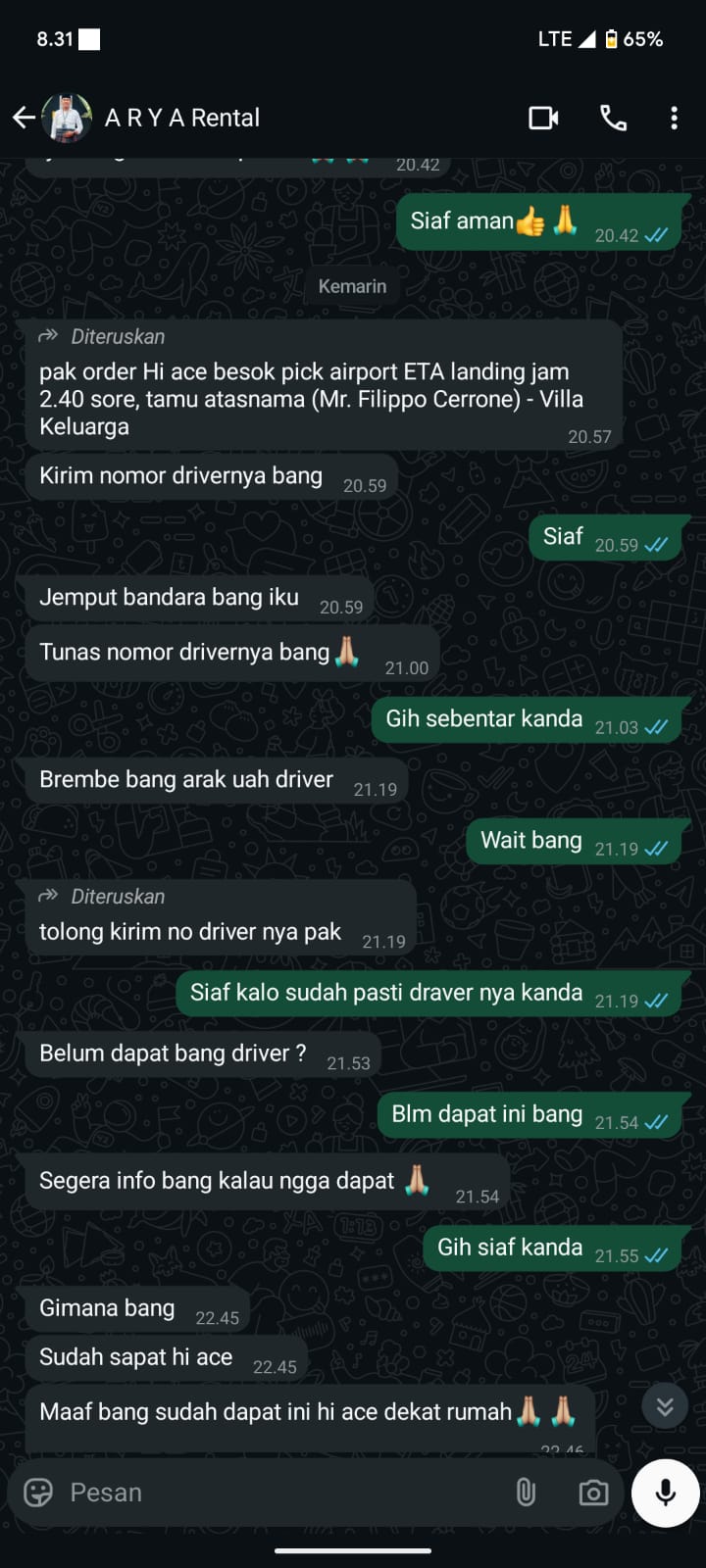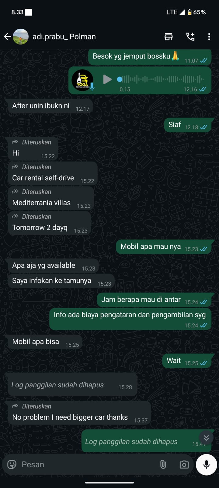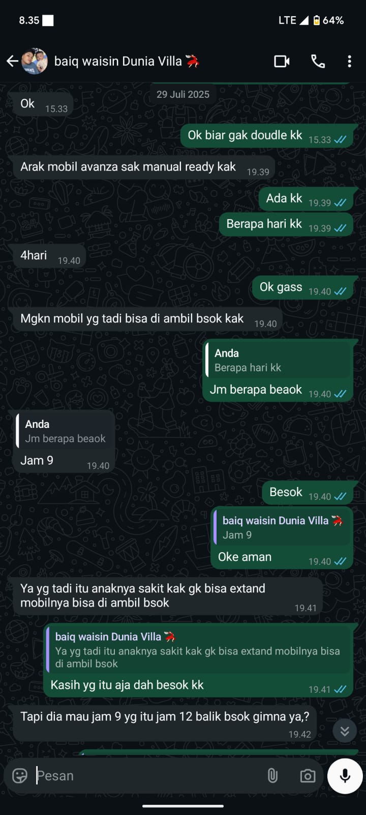 “Pelayanannya jujur dan transparan. Ga ada drama atau biaya tambahan aneh-aneh. Ini baru rental yang profesional.”
