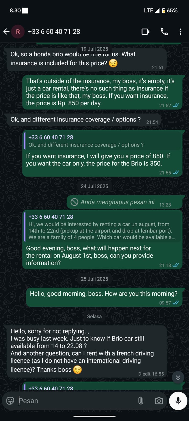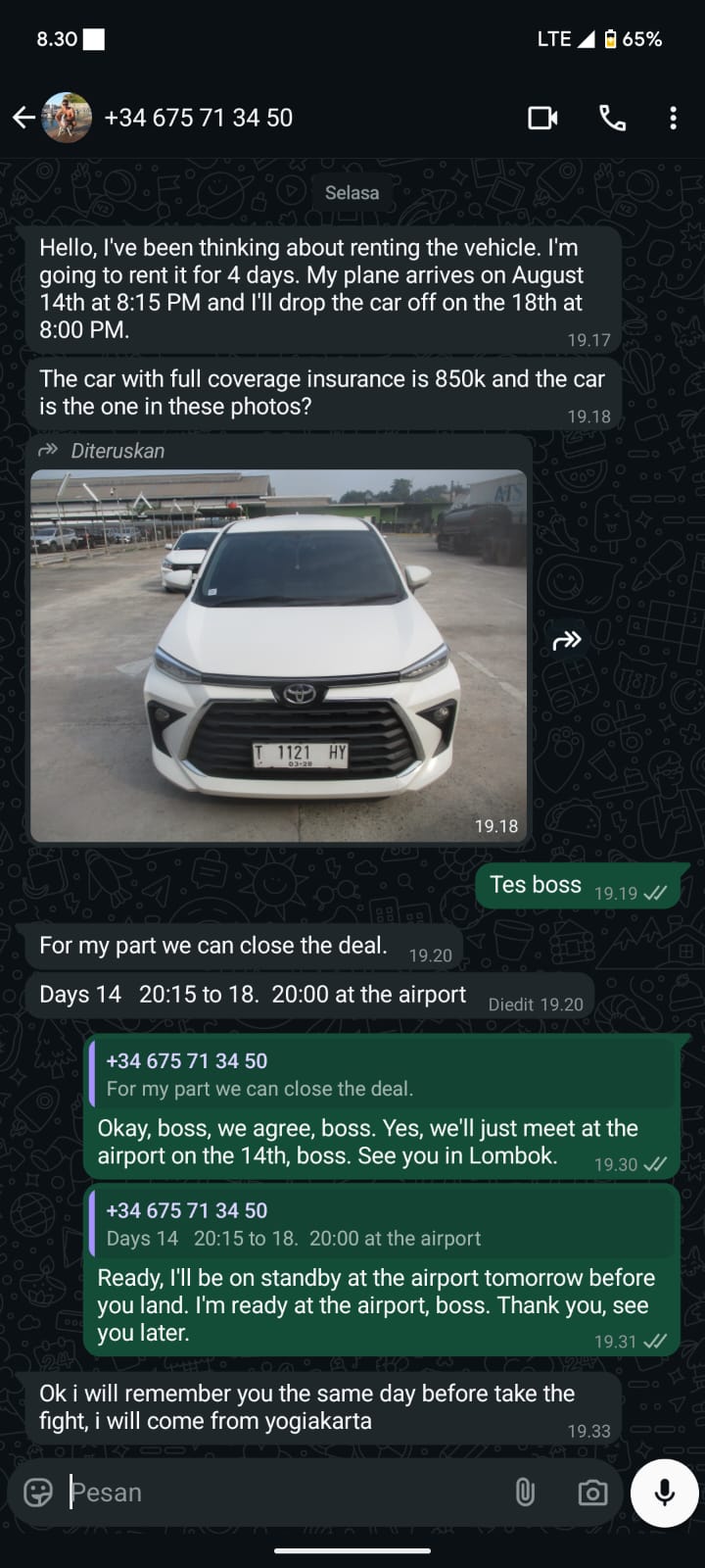 “Saya sewa lepas kunci dan semua prosesnya aman. Mobil dalam kondisi prima, cocok untuk keliling Mandalika dan Gili.”