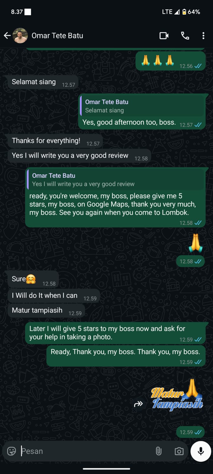 “Sopirnya informatif banget soal sejarah dan budaya lokal. Jadi selain jalan-jalan, saya juga belajar banyak tentang Lombok.”