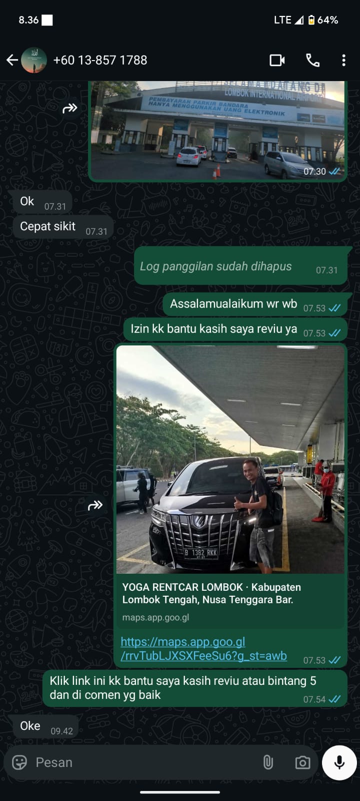 “Antar jemput bandara super on time. Sangat membantu untuk saya yang datang malam hari. Terima kasih YOGA RENTCAR!”